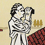 css-Eigenschaften und js zur Steuerung: animierte Layer, Erscheinen und Verschwinden orientiert an Mausposition; verschobene Effekte für Layer, Text und Bild.